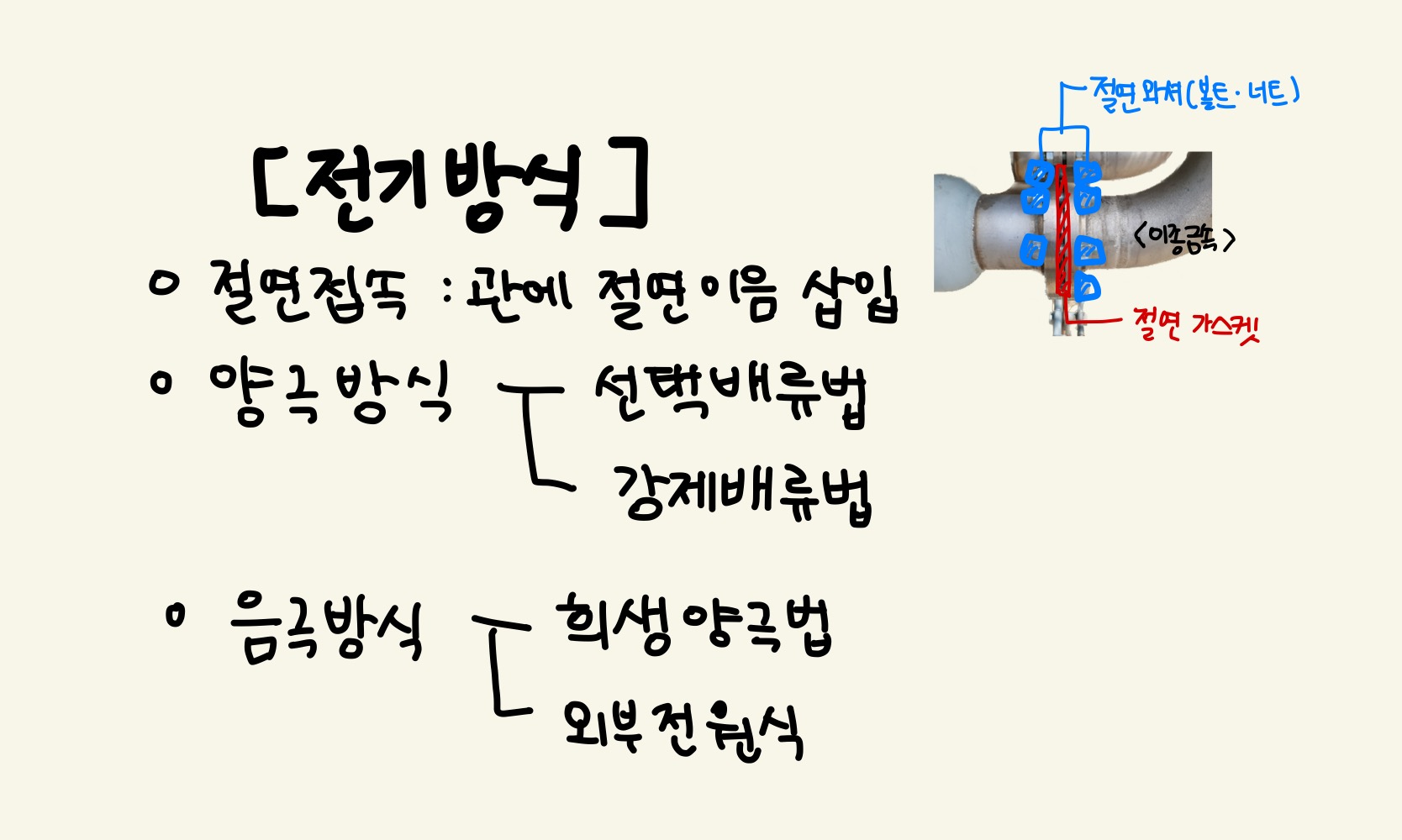 배관의 플랜지 이음사이에 절연와셔나 개스킷을 사용하여 이종금속이 접하지 않도록 처리해 주는 것입니다.