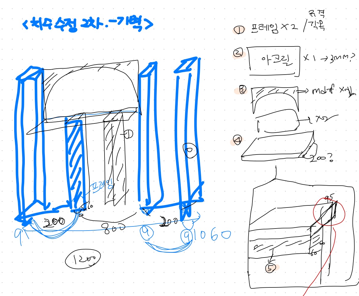 시공당시에 이런 식으로 치수를 세분화해서 작성했습니다.(결국 이 사진과 마지막 설치사진도 차이가 꽤 많습니다. 참고용으로 올려드립니다^^)