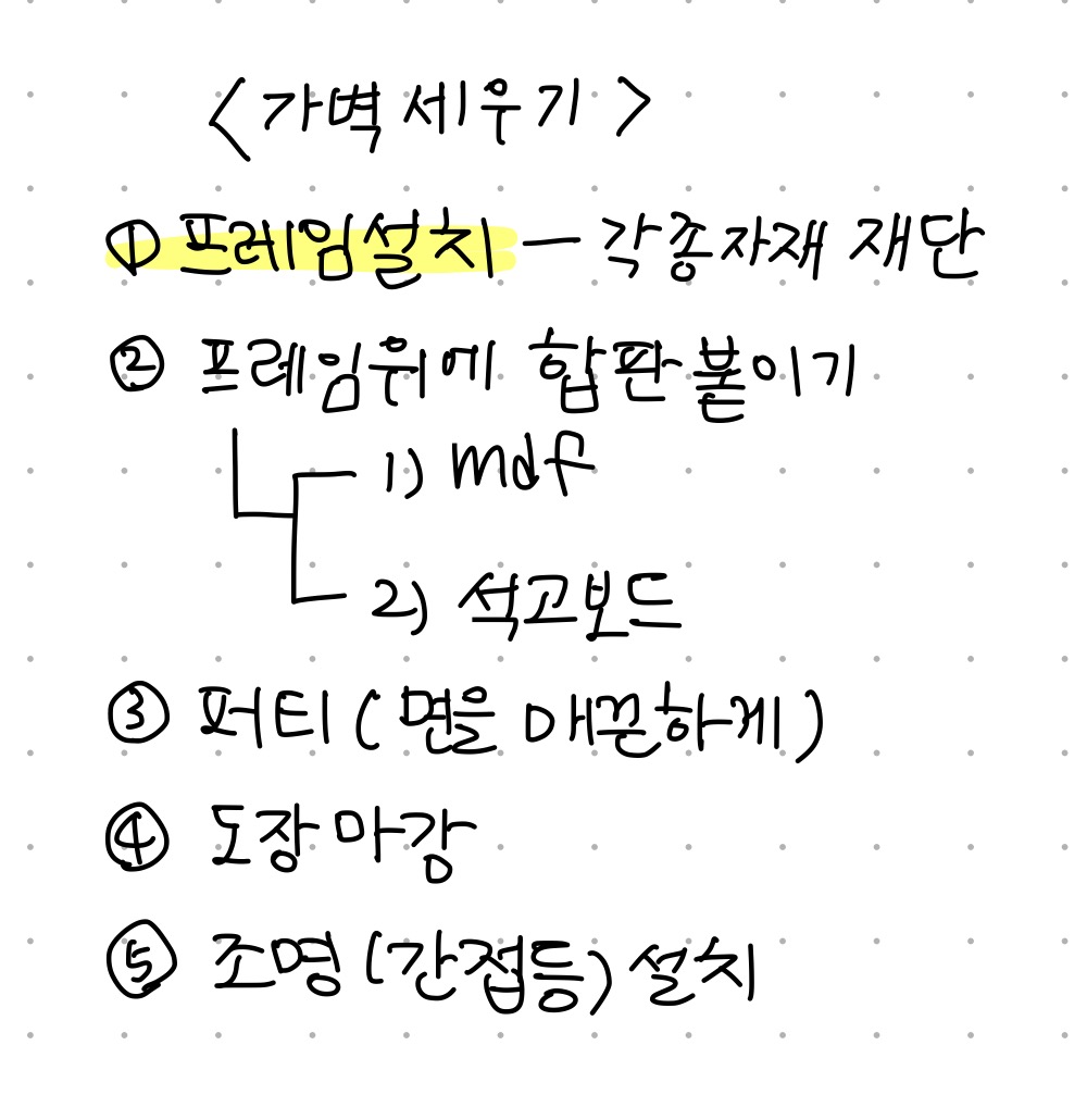 가벽을 설치하는 것은 간단하게 아래의 단계를 거칩니다.