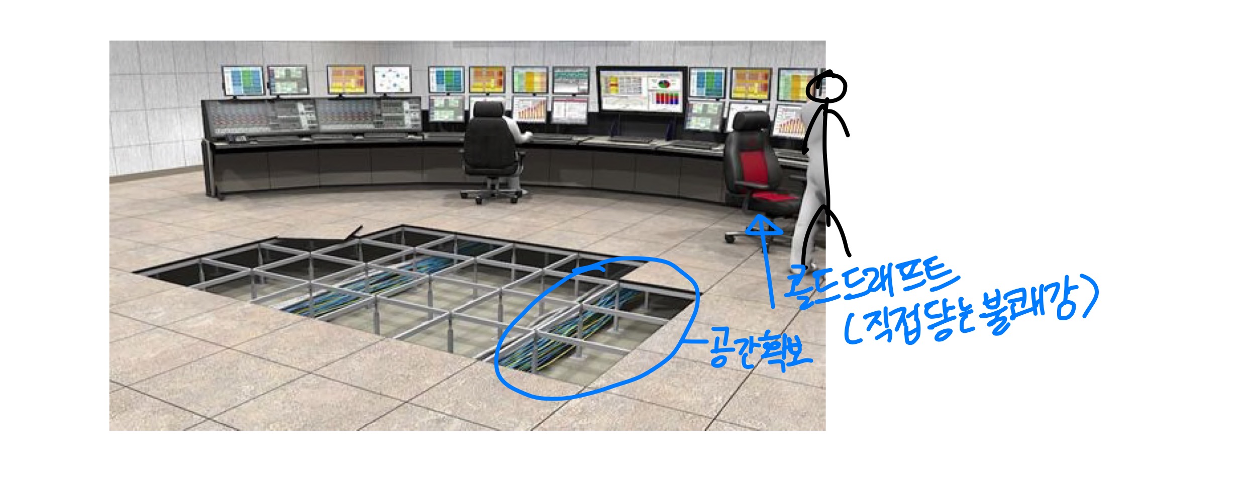 이러한 점에서 악세스플로어를 적용합니다. 이러한 악세스플로어 위에 서 있는 사람이 아래에서 쏘는 뜨겁고, 따듯한 공기로 불쾌감을 느낄 수 있는 것이