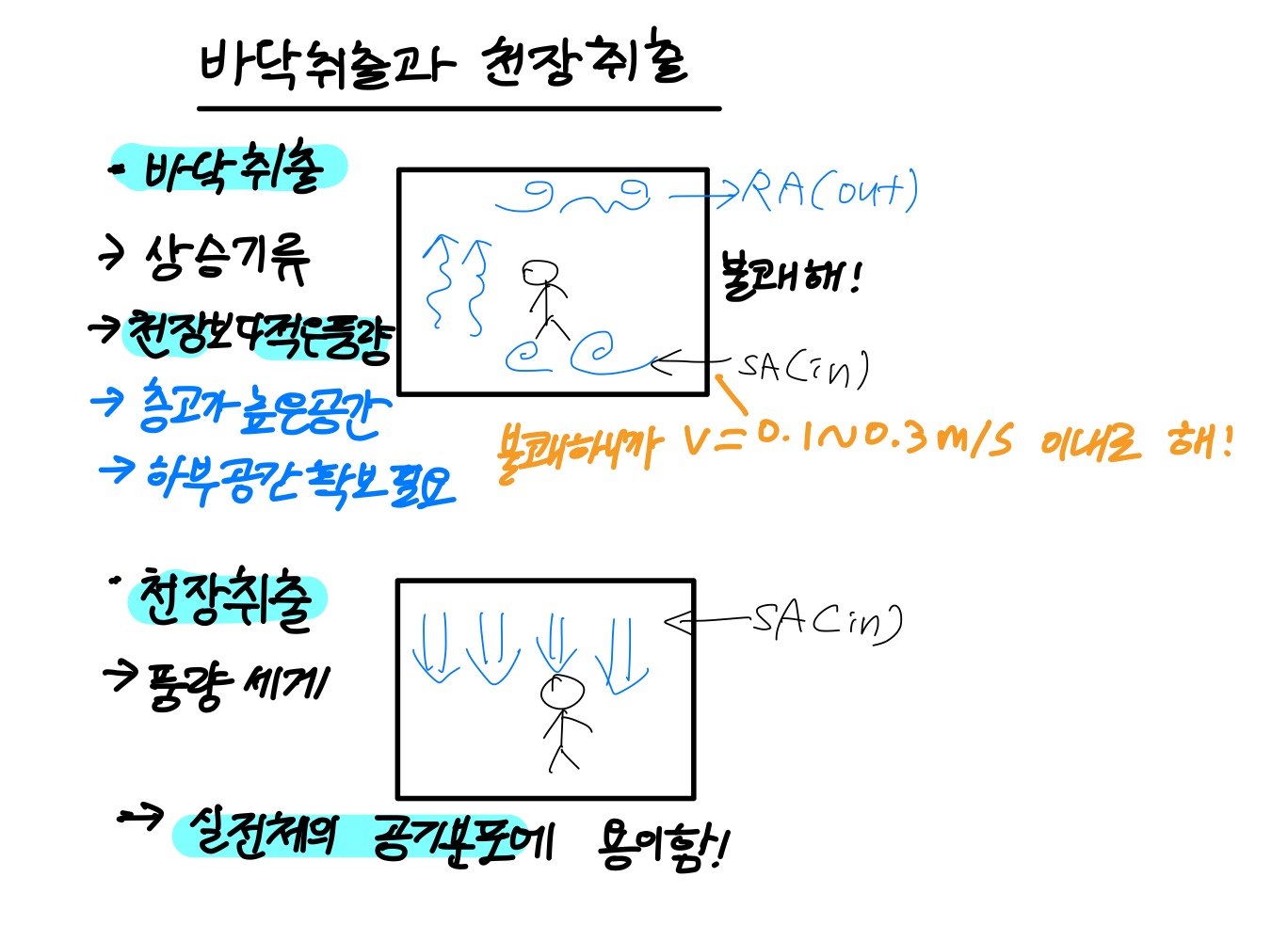 이러한 점에서 바닥취출의 유속은 0.1~0.3m/s정도로 설정합니다.