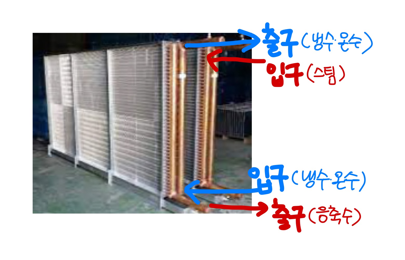 스팀의 경우 위로 들어와 아래로 응축수가 나오고,