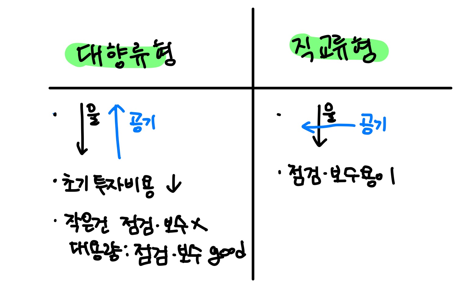 대향류형이 보통 초기투자비가 저렴하다는 장점이 있습니다.