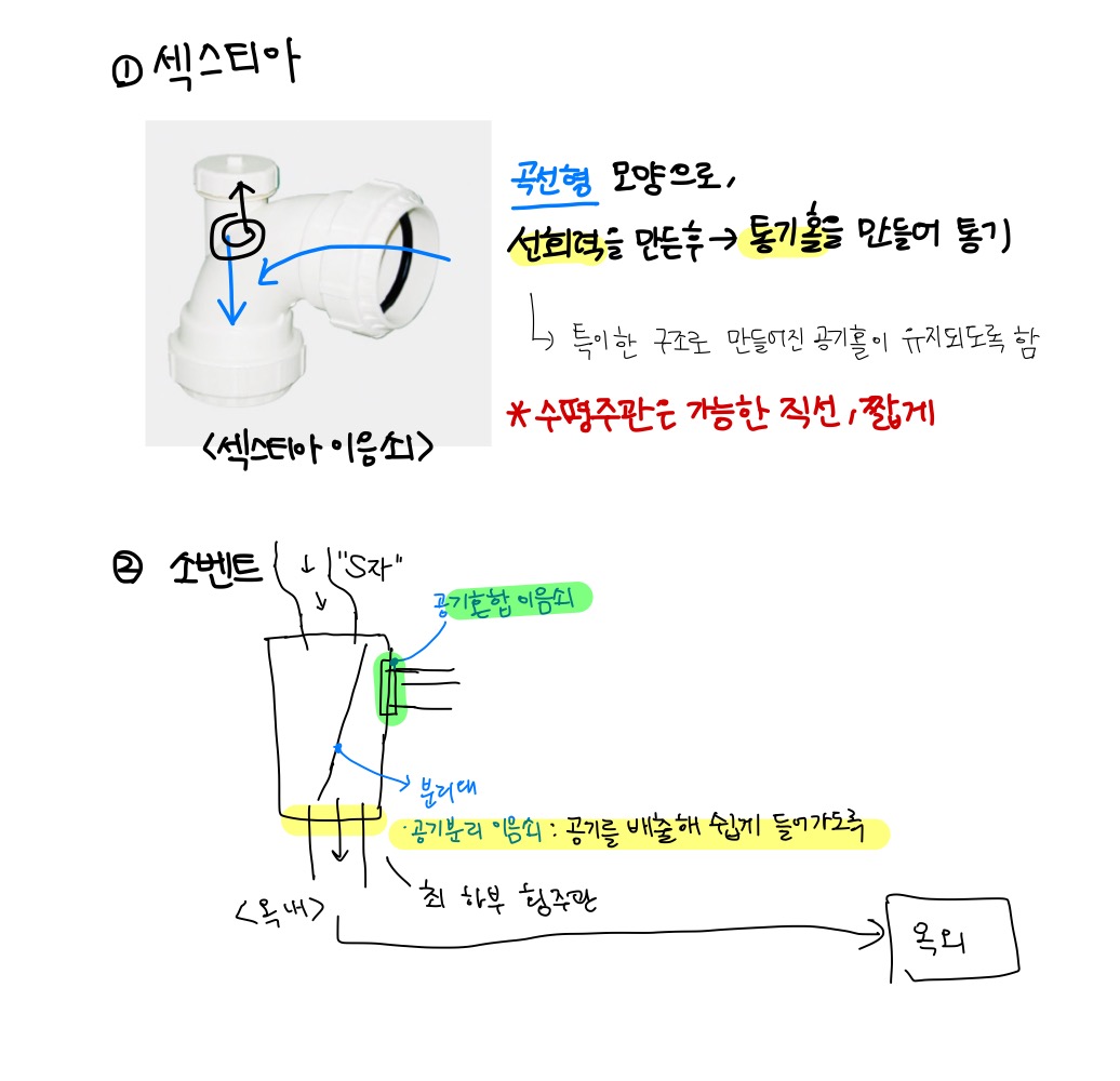 소벤트 방식은, 배수 수직관에 공기를 주입하면서 물이 낙하할때 공기가 완충역할+통기역할을 하도록 합니다.