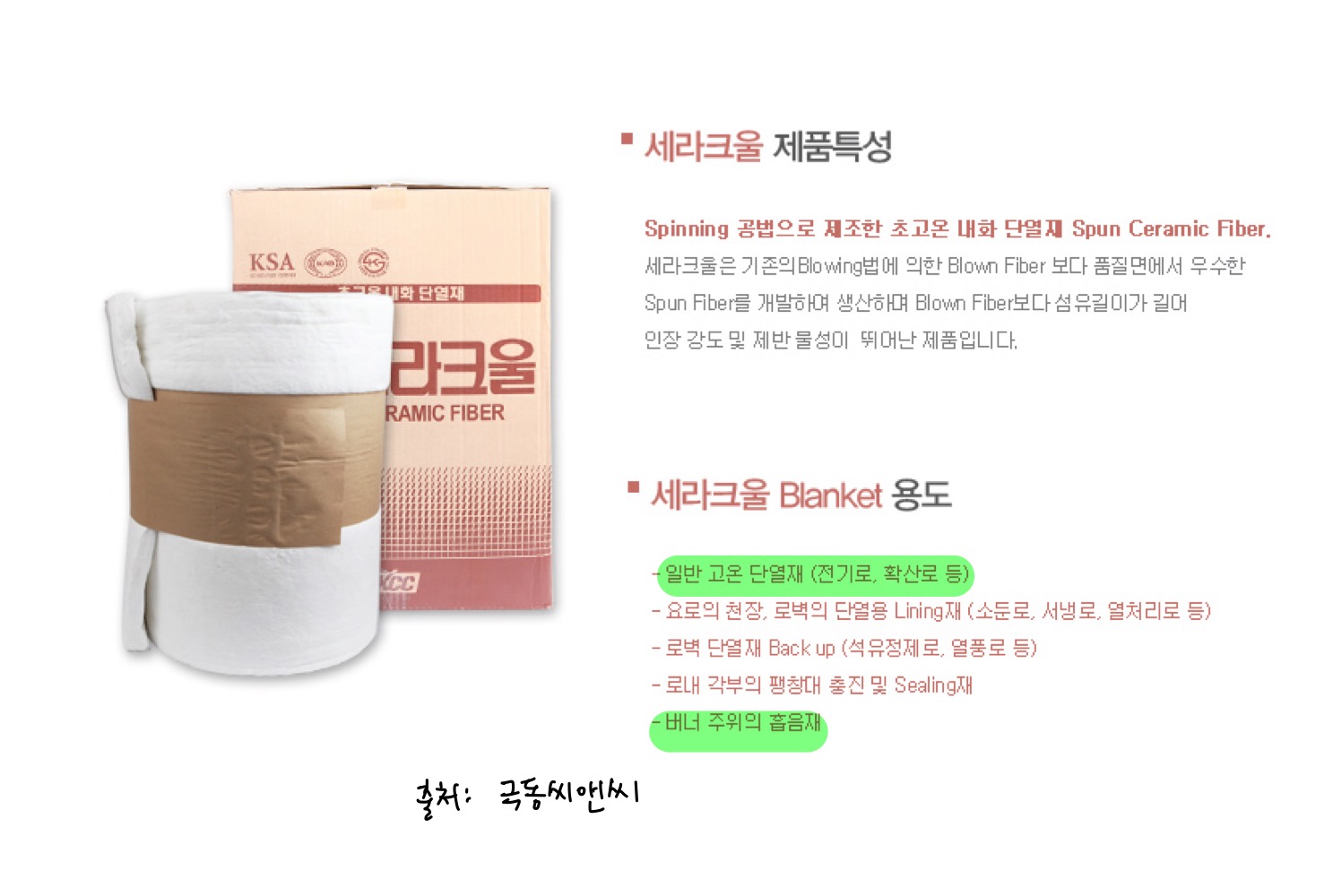 이러한 단열재는 온도에 따라 다양한 재질이 사용되는데, 다양한 온도대를 커버할 수 있는 재질을 세라크울이라고 합니다.