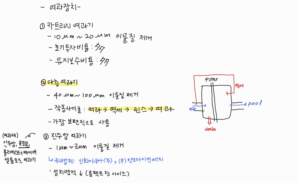 다층여과기보다 소형의 이물질을 제거할 수 있는 장비이고, 초기단가는 높으나 다층여과기와의 갭이 점차 줄어들고 있다고 합니다.