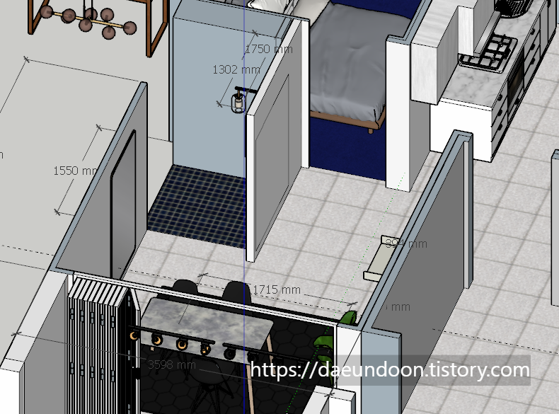 2안도 마음에 들긴 했는데.. 목공을 처음 도전해서 대각선 가벽시공은 도전할 엄두가 나지 않았습니다. ㅠㅠ