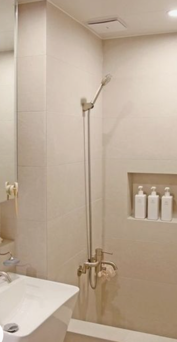 보통 옛날 아파트는 욕조가 있는 거실 화장실에, 샤워 수전이 아래쪽에 달려있습니다.